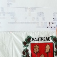 A l’automne dernier, j’ai saisi l’arbre prêté par Pierre de Talmont « Grandmaison » que j’ai complété grâce aux archives en ligne. L’arbre « Descendance de Gautreau François et Robert Marguerite » est maintenant imprimé il fait 240 x 100 cm. C’est Pierre qui en est propriétaire, il n’oubliera pas de l’emporter le jour de notre assemblée générale.
